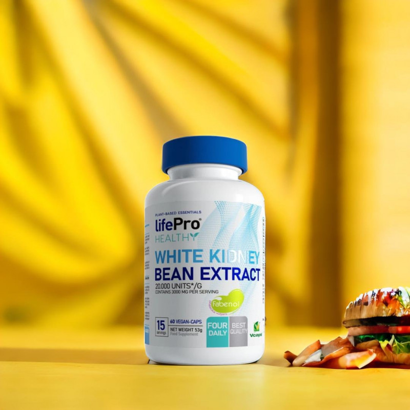 Life Pro White Kidney Bean Extract is a supplement formulated with white kidney bean extract. Life Pro White Kidney Bean Extract aims to decrease the absorption of starchy carbohydrates, as well as partially inhibit their digestion, thanks to its mechanism of action. In addition, it helps to control calorie intake and is an ally for people aiming for fat loss.