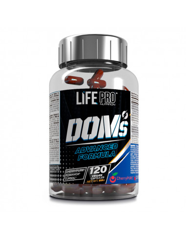 Life Pro has designed Doms, a highly effective supplement to reduce the pain and fatigue associated with the onset of stiffness. It has been formulated with a composition of 4 rigorously selected ingredients, which act synergistically as a natural anti-inflammatory. It contains Montmorency CherryPure Dry Cherry Extract, Cursol Turmeric Dry Extract, Pomanox Pomegranate Dry Extract, Punica granatum. It also contains vitamin D.