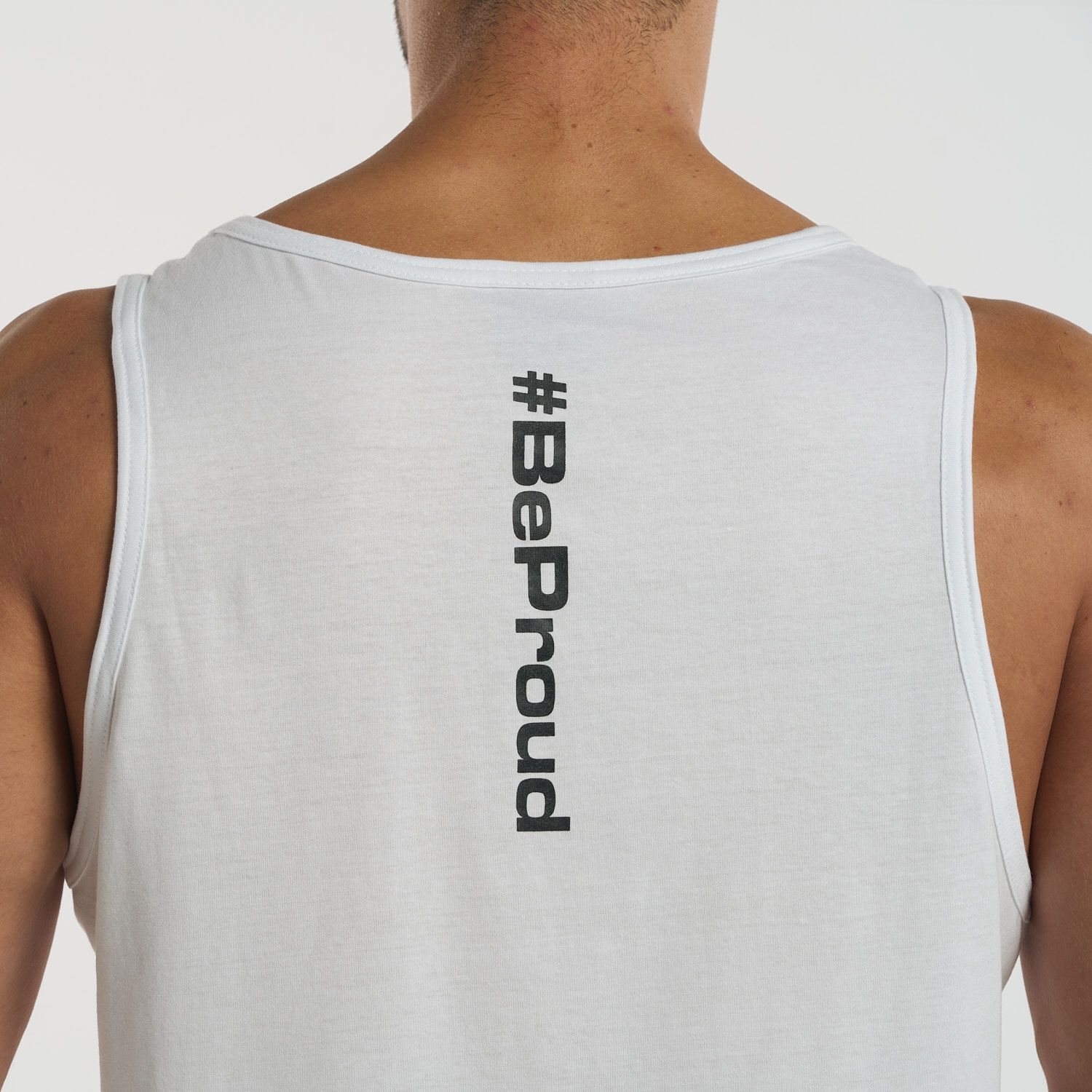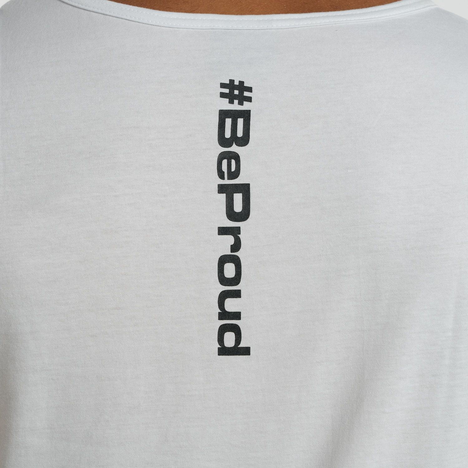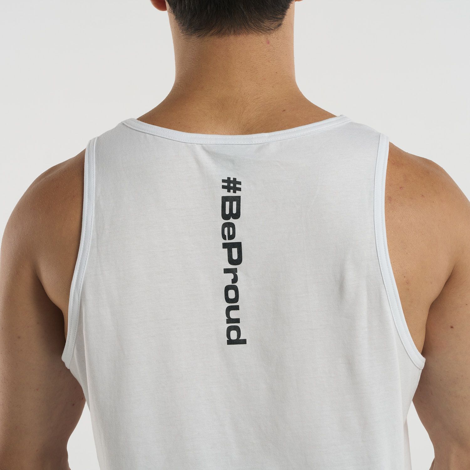 With a minimalist touch, this tank top features a small logo on the chest and the #BeProud hashtag on the back, giving it a modern, authentic vibe. Ideal for those seeking a garment that’s discreet but with a powerful message, perfect for any occasion.