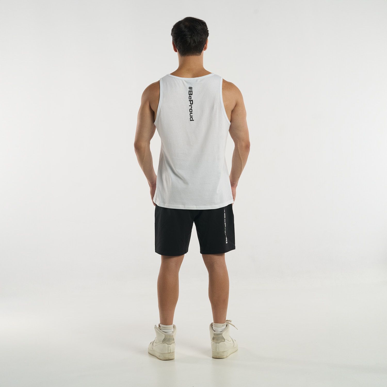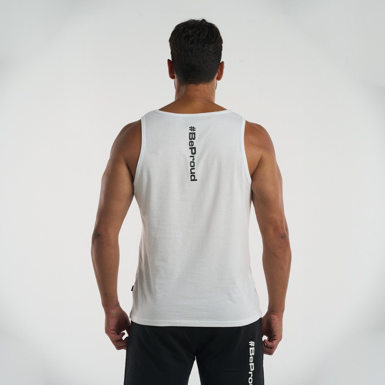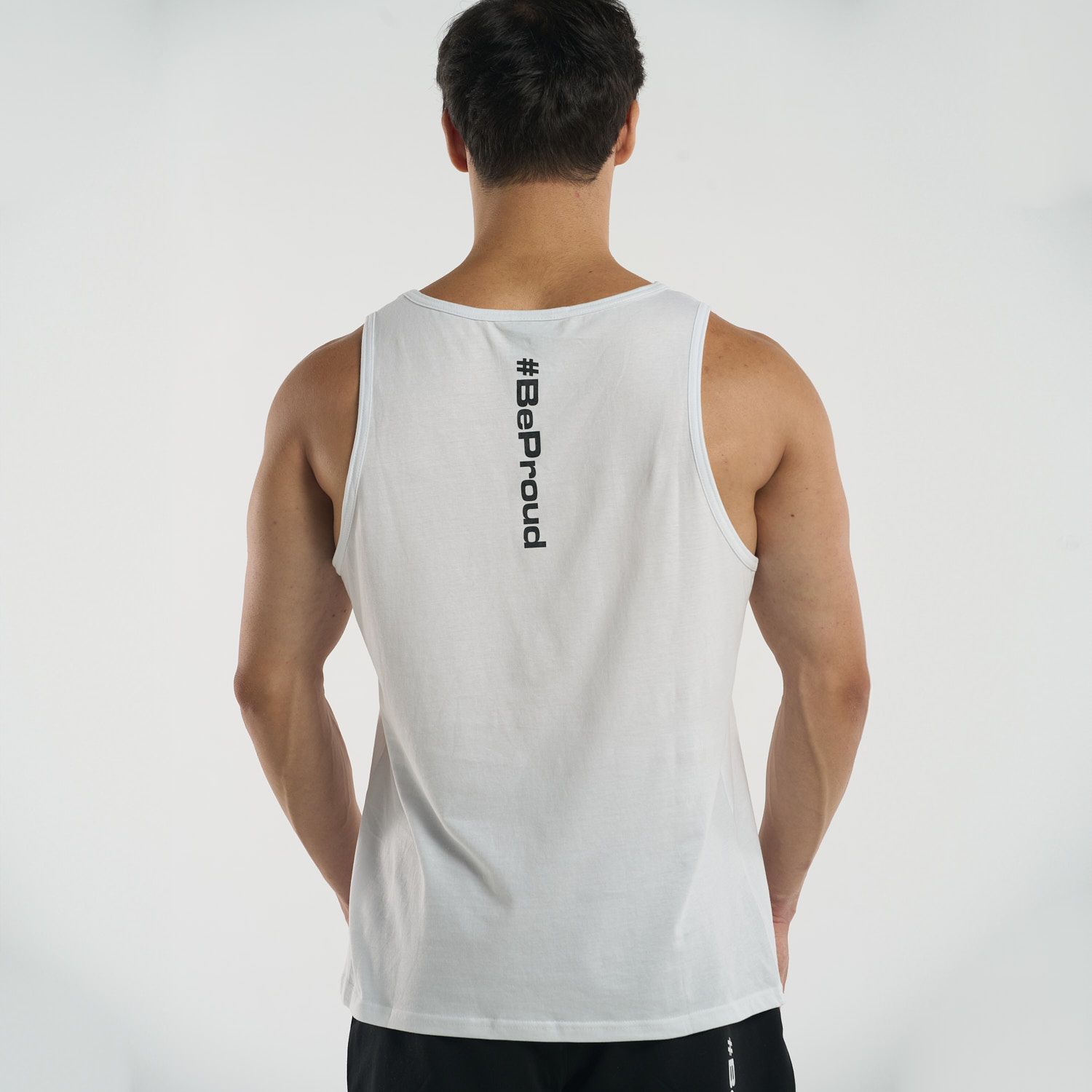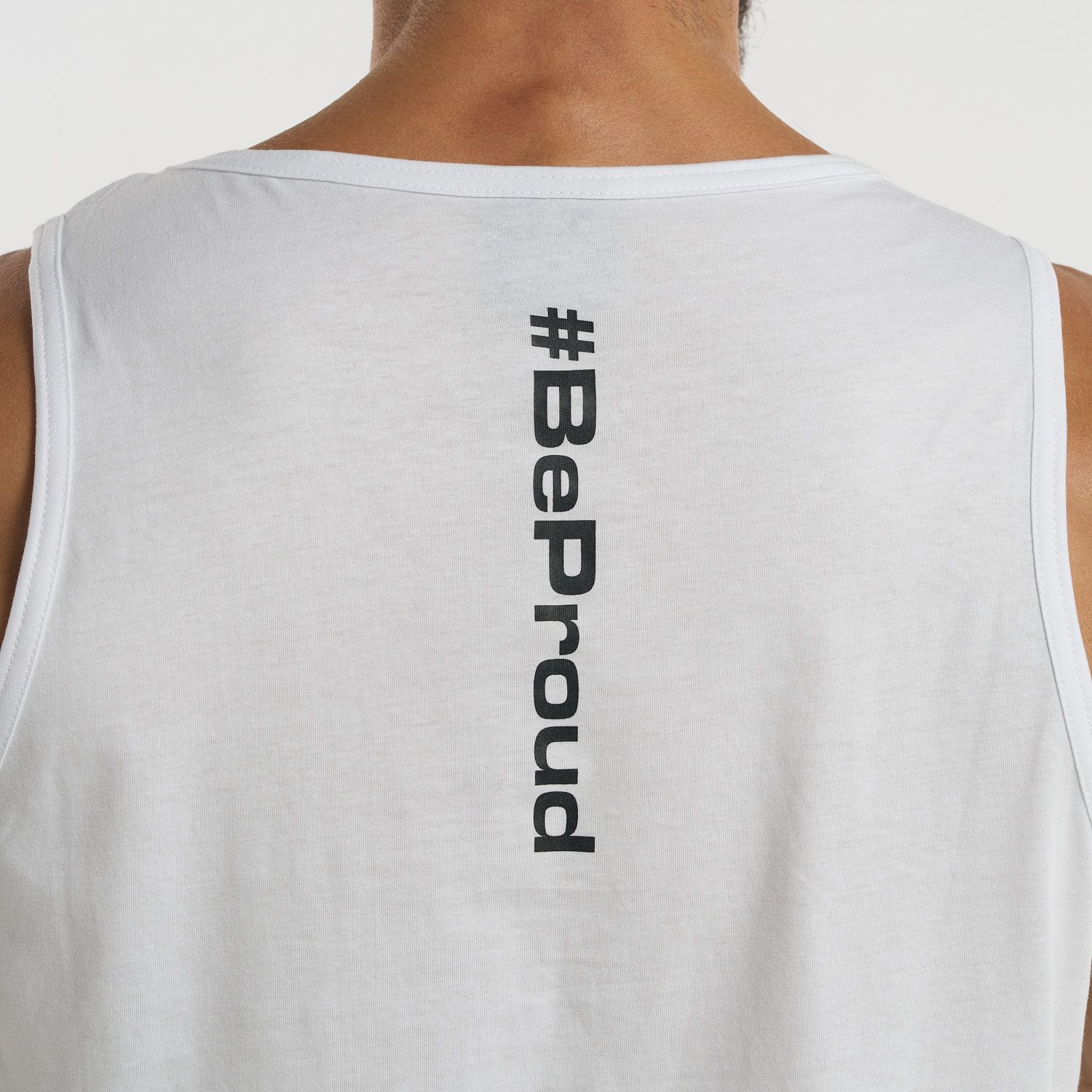 With a minimalist touch, this tank top features a small logo on the chest and the #BeProud hashtag on the back, giving it a modern, authentic vibe. Ideal for those seeking a garment that’s discreet but with a powerful message, perfect for any occasion.