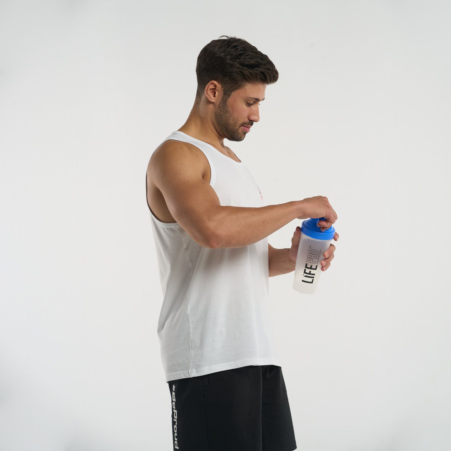 The LIFE PRO TANK TOP #BEPROUD is the perfect choice for those who live with authenticity and pride. This white sleeveless top, crafted from high-quality cotton, provides the comfort you need to express your best self, whether in the gym or in your leisure time.