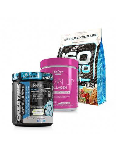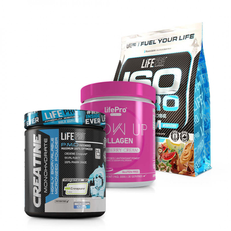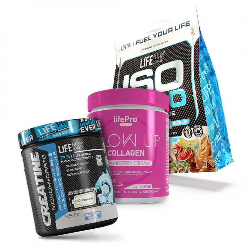 The Pack Life Pro Isolate Zero + Creatine Creapure + Collagen Glow Up is a complete solution for improving sports performance, accelerating muscle recovery, and taking care of skin, hair, and joints. A pack designed for those who want visible results in both body and health.