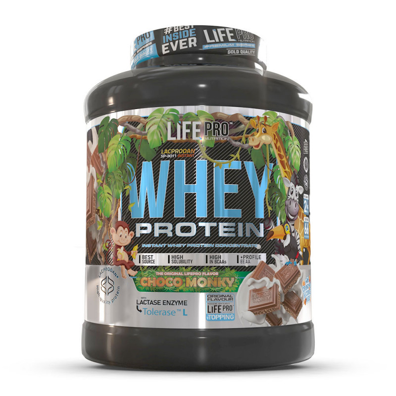 Whey Choco Monky 2kg is the special edition of Life Pro's Whey line. It has a unique and innovative taste, achieved by combining Lotus biscuit and alkalised cocoa, to your favourite chocolate bar.