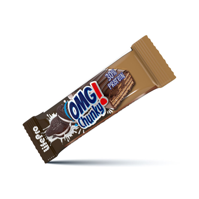 OMG Chunky! representan una nueva generación de barritas de alta proteína de Life Pro, con 3 sabrosos sabores. Estas barritas suaves, contienen 30% de proteínas, y +10 gramos de proteínas en cada unidad. Estas barritas especiales poseen una deliciosa textura crujiente otorgada gracias a sus diferentes capas de barquillo recubiertas de chocolate. Además, tienen un bajo contenido de azúcares, y una cantidad de calorías reducida (169kcal/barrita). Son una excelente opción para satisfacer los requerimientos diarios de proteínas. Pueden ser consumidas como snack, en el desayuno, merienda o postre. ¡Escoge tu favorito!