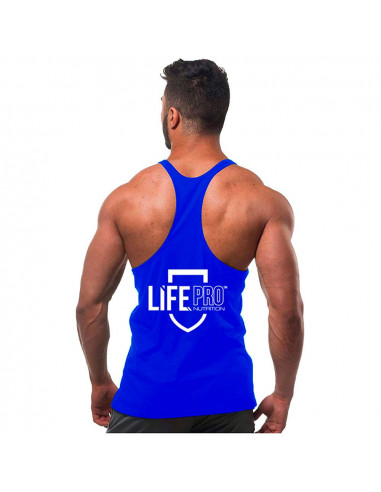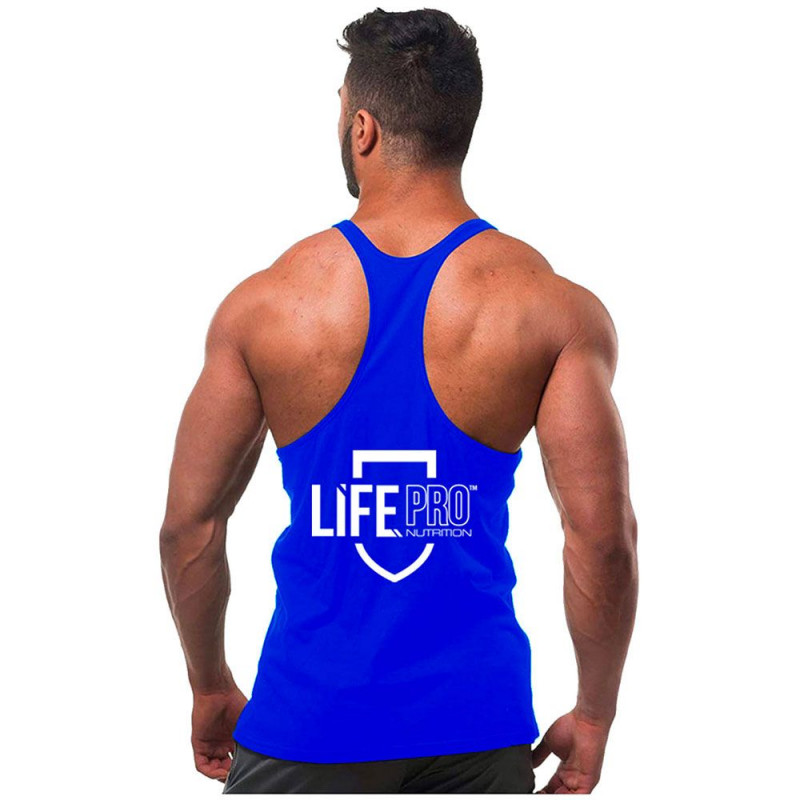 CAMISETA LIFE PRO TIRANTES. de color negro de fibra textil transpirable y elástica para que te encuentres cómodo en el gimnasio y puedas realizar tus ejercicios sin problemas.