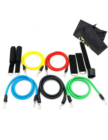 En Nutrimarket puedes encontrar este completo pack de 5 bandas y 5 agarres, junto con su bolsa de tela para transportarlos. Ponemos a tu disposición este complemento ideal para tus entrenamientos.