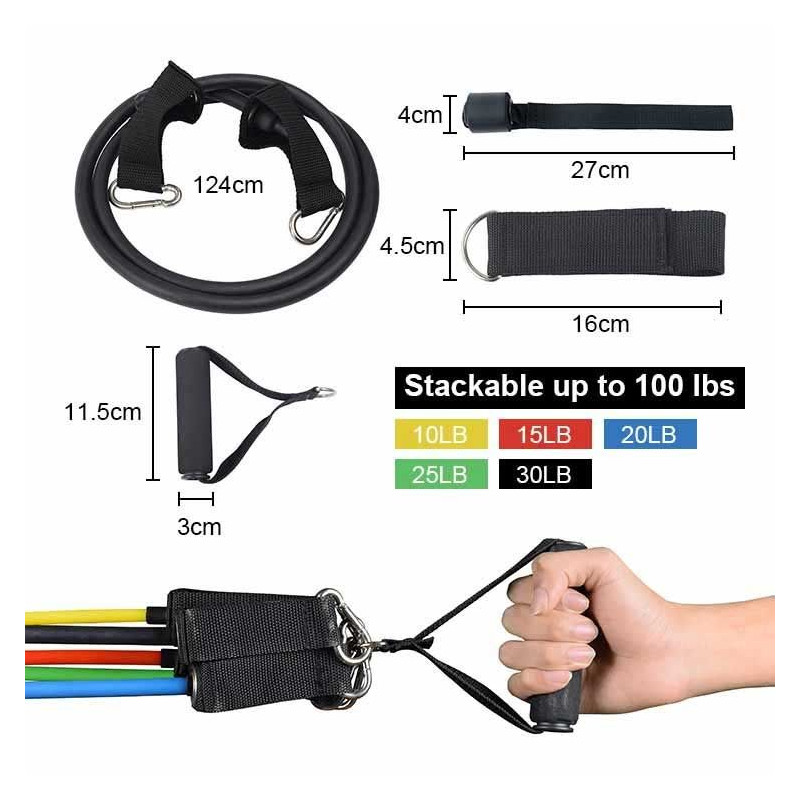 Este pack contiene 5 gomas de distintos colores. Cada color hace referencia a una resistencia. Permiten adaptar el grado de intensidad a la condición física de cada persona.