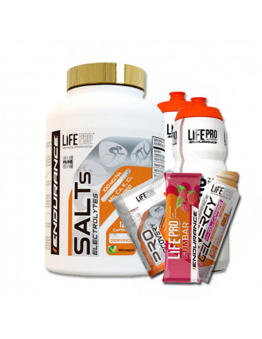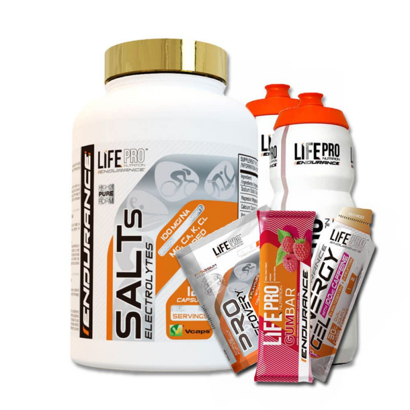 Life Pro Endurance Salts es un complemento a base de sales minerales en formato de cápsula. La toma de sales es fundamental durante las competiciones y entrenamientos exigentes. Su toma es fundamental para reponer los electrolitos perdidos y prevenir calambres musculares.