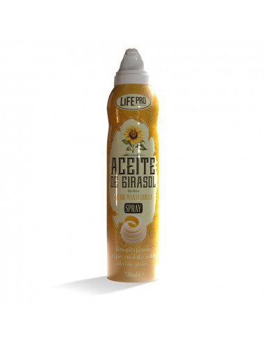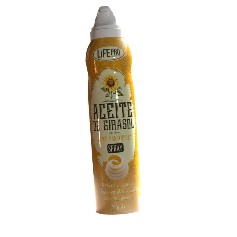Hazte con el mejor aceite de girasol alto oleico del mercado. Life Pro Fit Food Sunflower Butter Oil Spray 200ml. Su aroma a mantequilla le aporta un sabor excepcional a tus platos. Ideal para usarlo en la sartén, a la plancha, ensaladas, moldes, aderezos, pastas, …