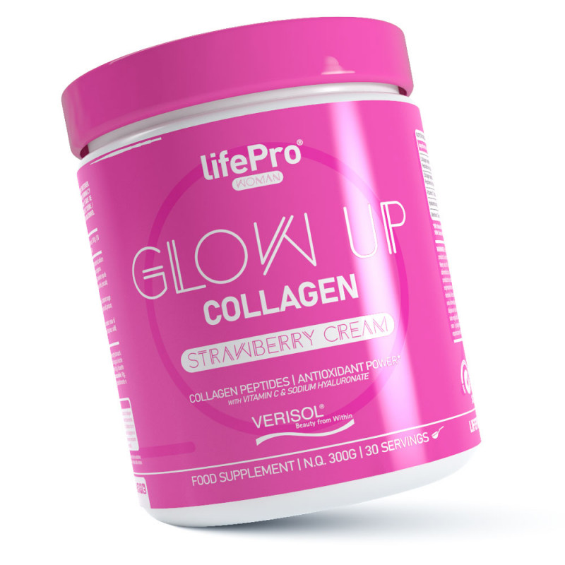 Life Pro Woman Glow Up Collagen es un suplemento formulado a base de péptidos de colágeno, selenio, vitamina C y ácido hialurónico. La suplementación con Life Pro Woman Glow Up Collagen contribuye a mejorar y fortalecer el estado de la piel, uñas y cabello.