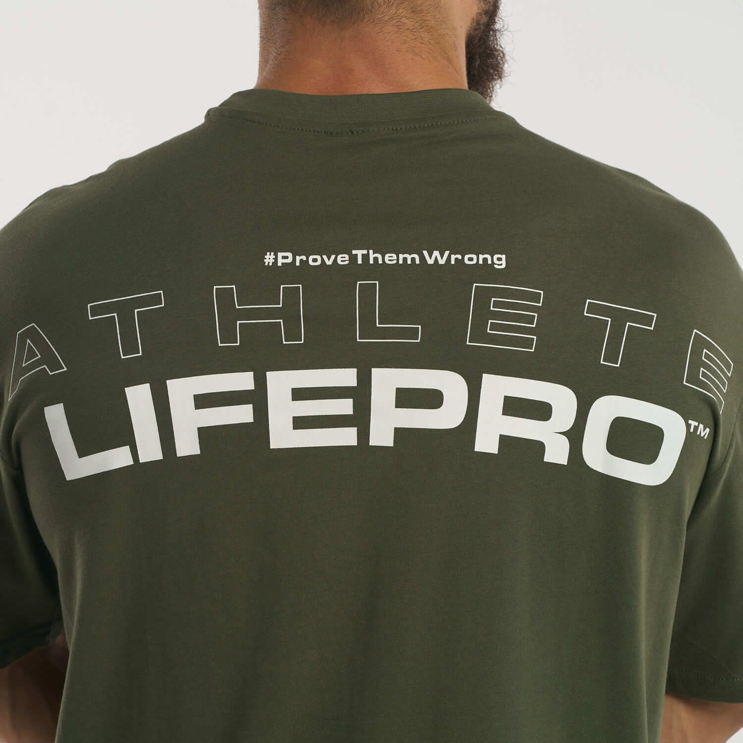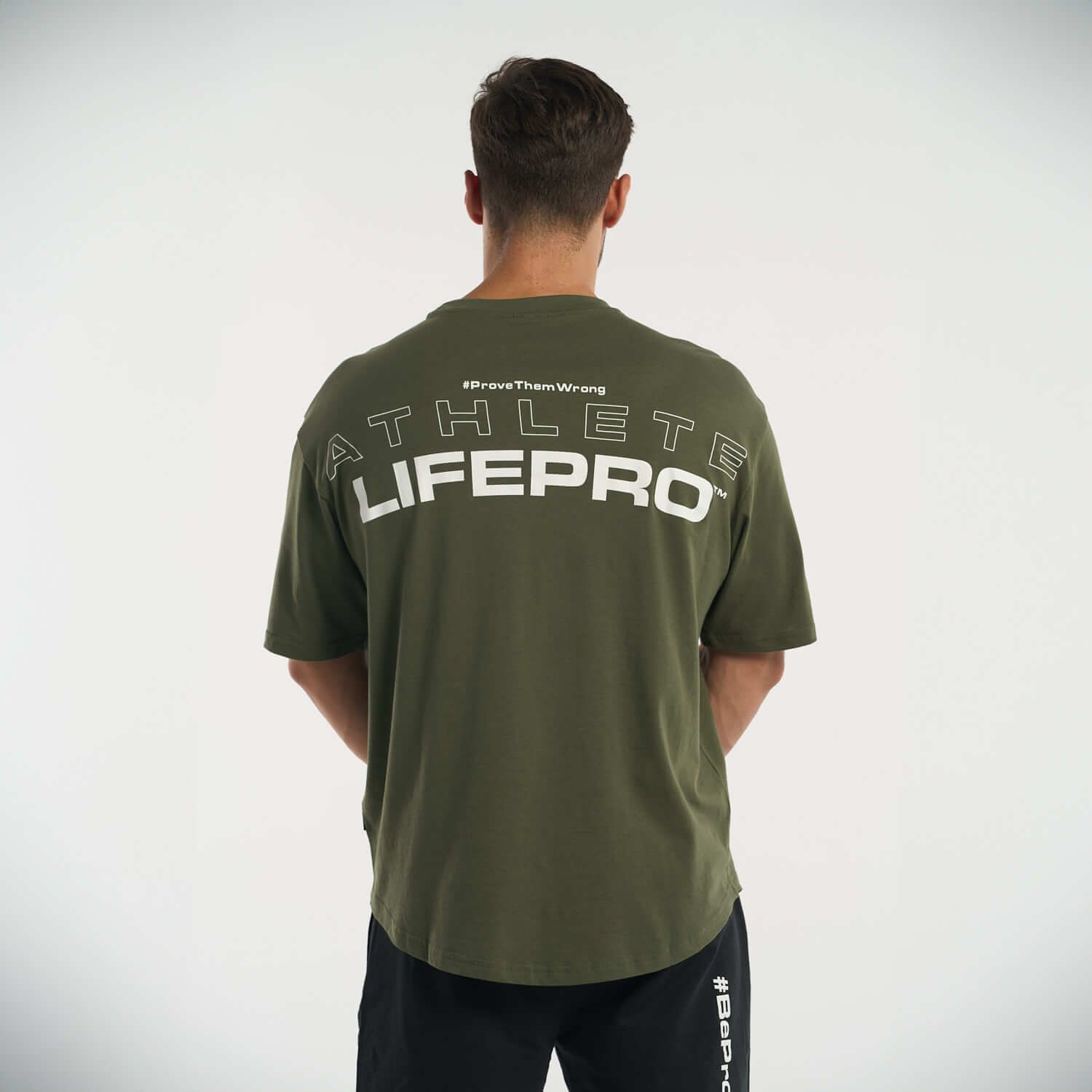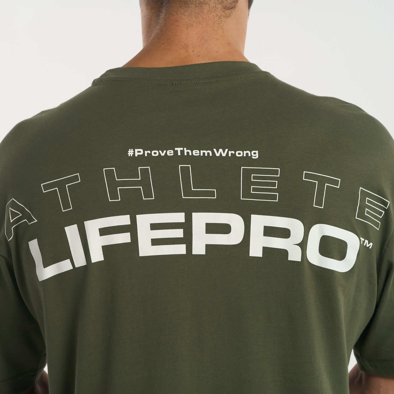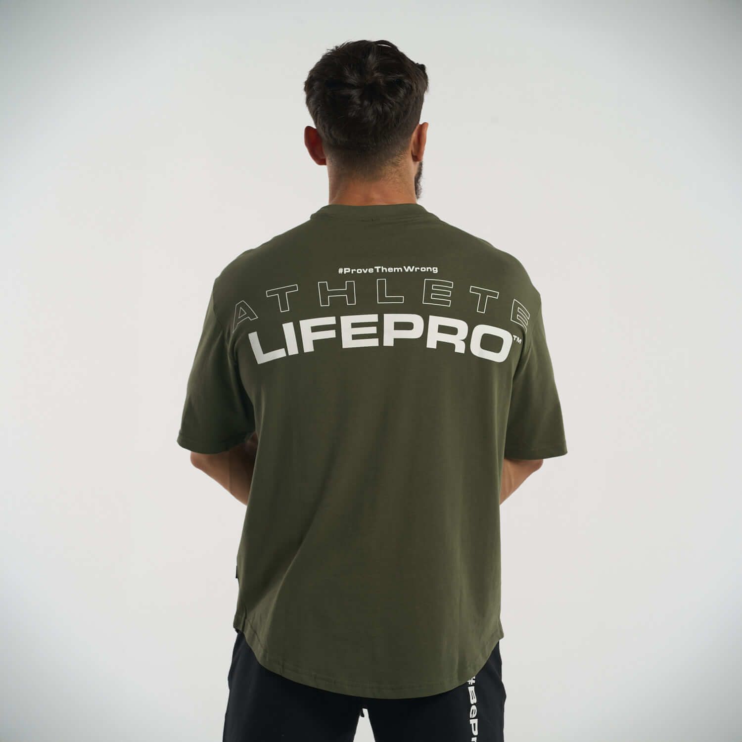 La LIFE PRO OVERSIZE ATHLETE es una camiseta que no solo se ve bien, sino que te hace sentir bien. Con su corte amplio y su diseño en verde oliva, esta prenda está hecha para que te muevas con libertad y seguridad.
