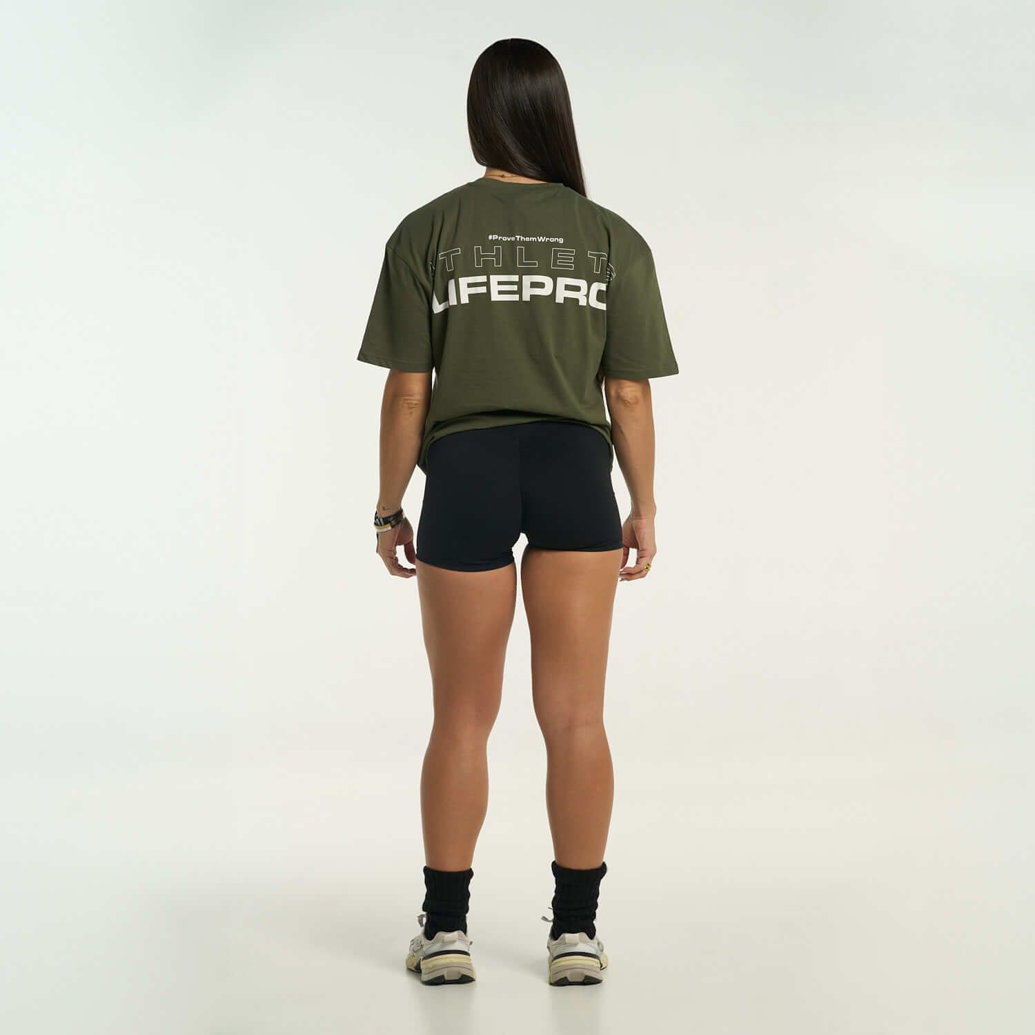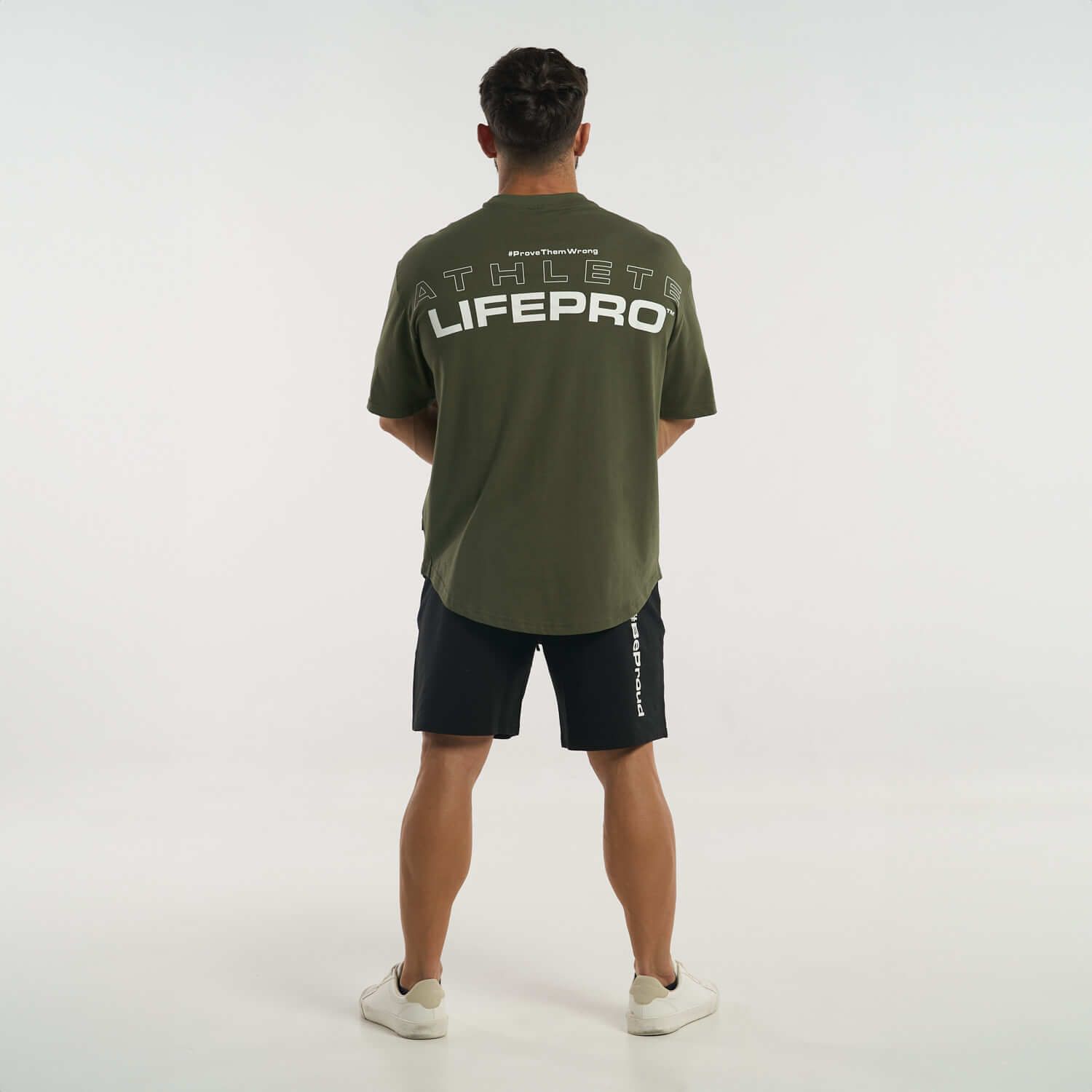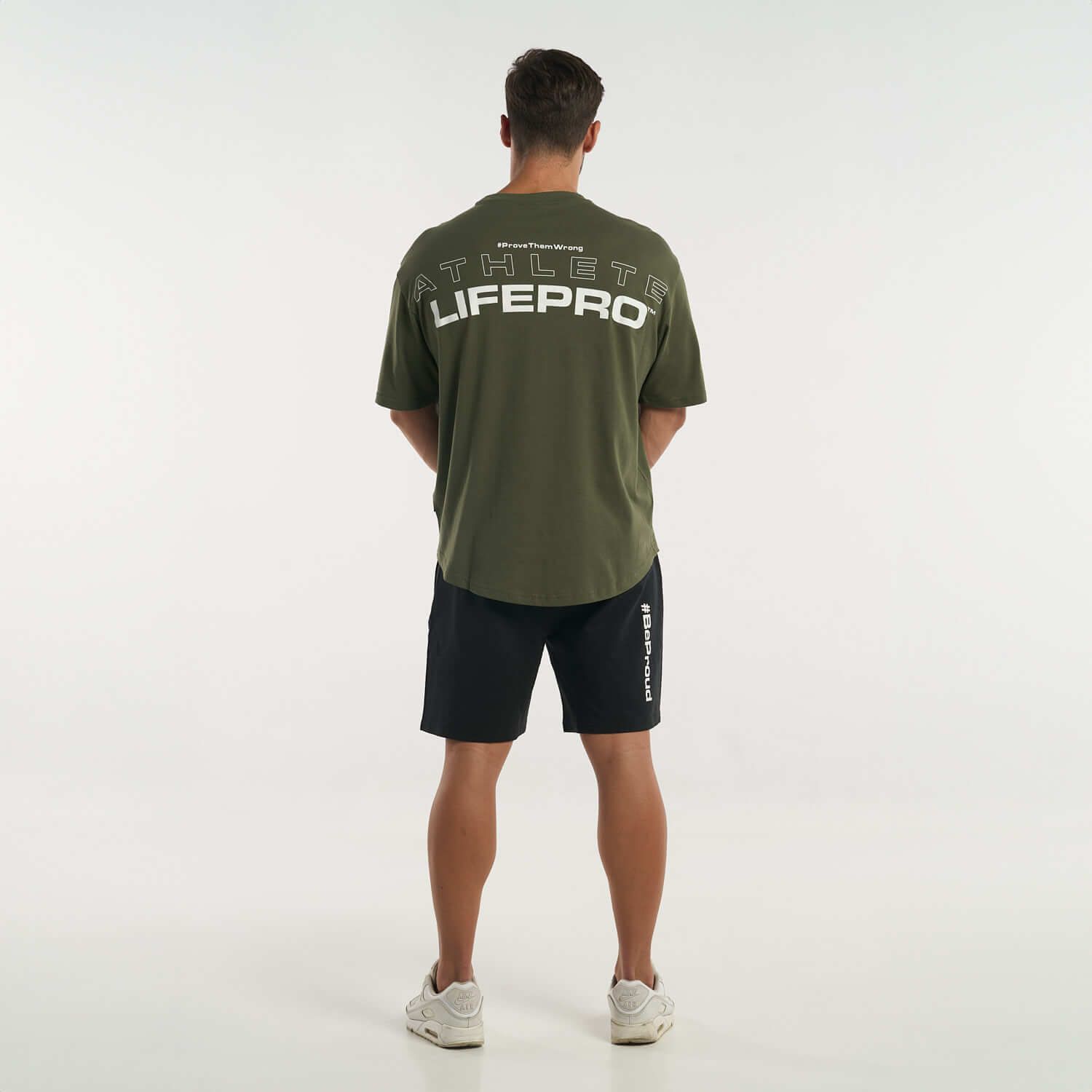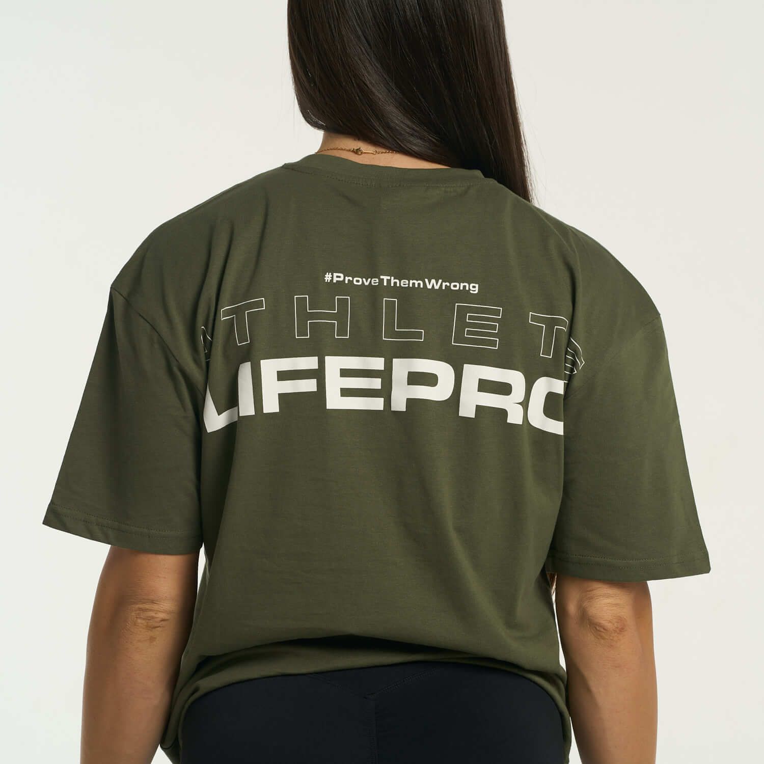 La LIFE PRO OVERSIZE ATHLETE es una camiseta que no solo se ve bien, sino que te hace sentir bien. Con su corte amplio y su diseño en verde oliva, esta prenda está hecha para que te muevas con libertad y seguridad.