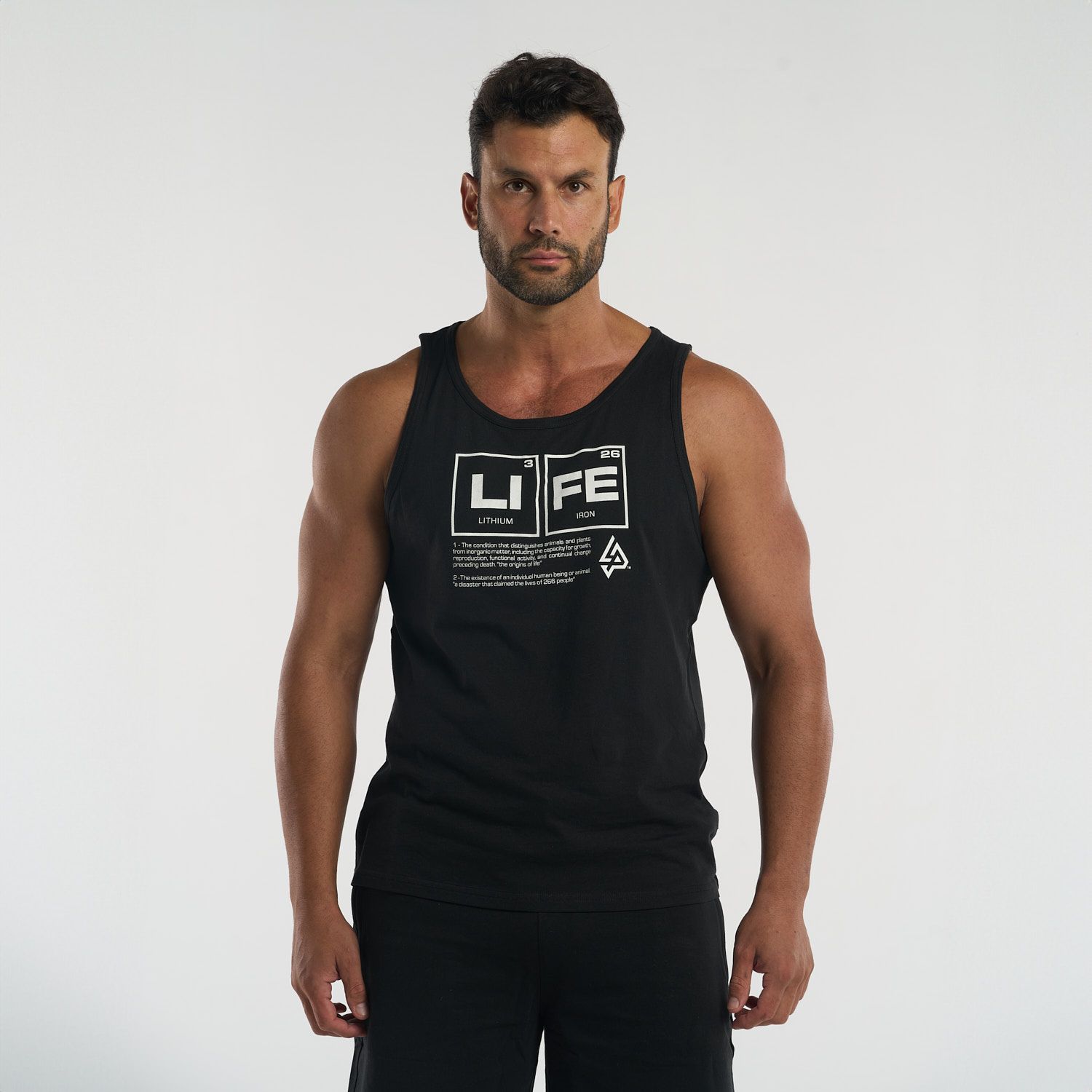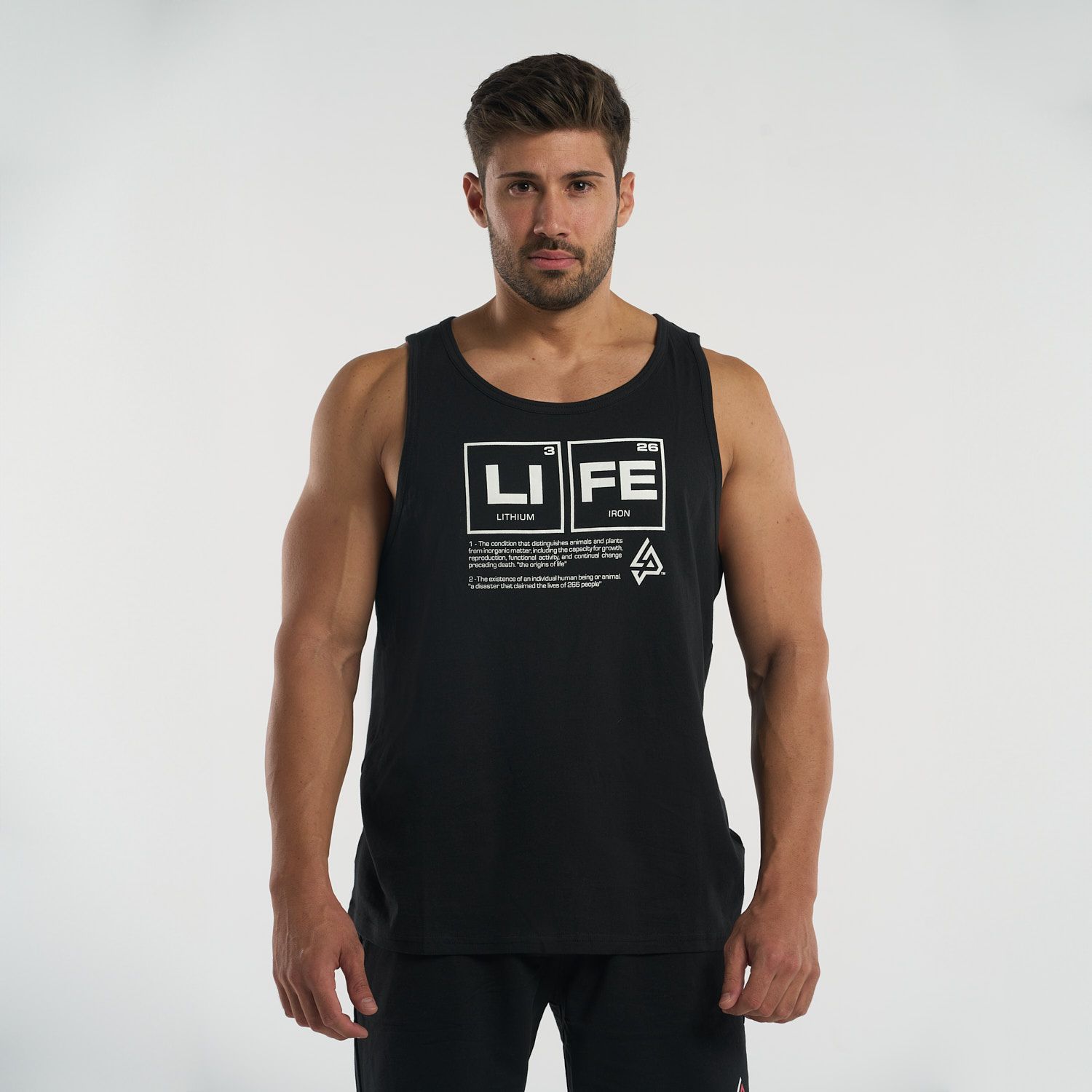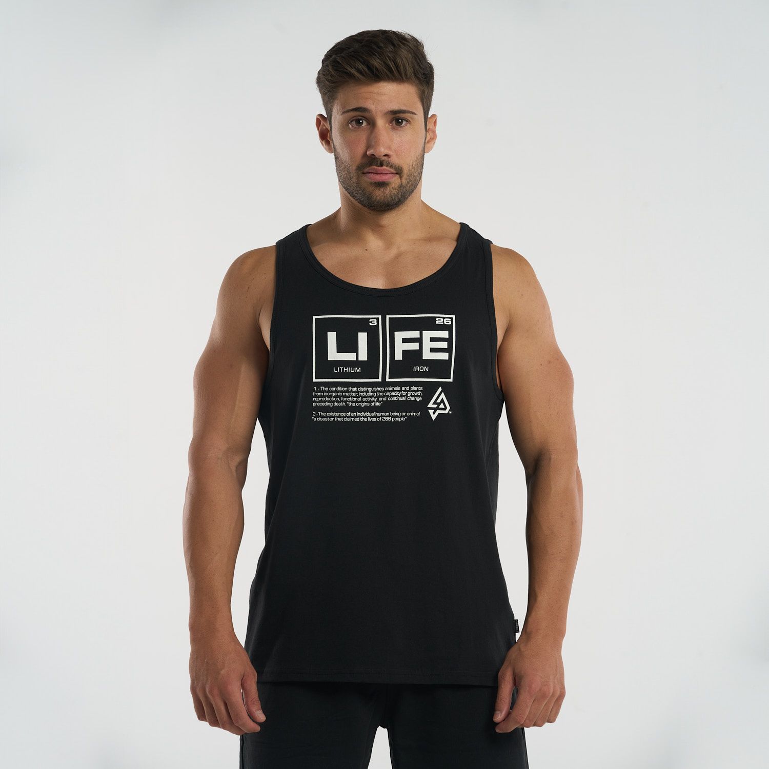 Diseñada para brindar comodidad sin restricciones, esta camiseta tipo tank top permite total libertad de movimiento. Su diseño en el pecho, basado en la tabla periódica con los elementos "Li" (Litio) y "Fe" (Hierro), crea la palabra “LIFE”, un mensaje inspirador que conecta ciencia y motivación en cada uso.