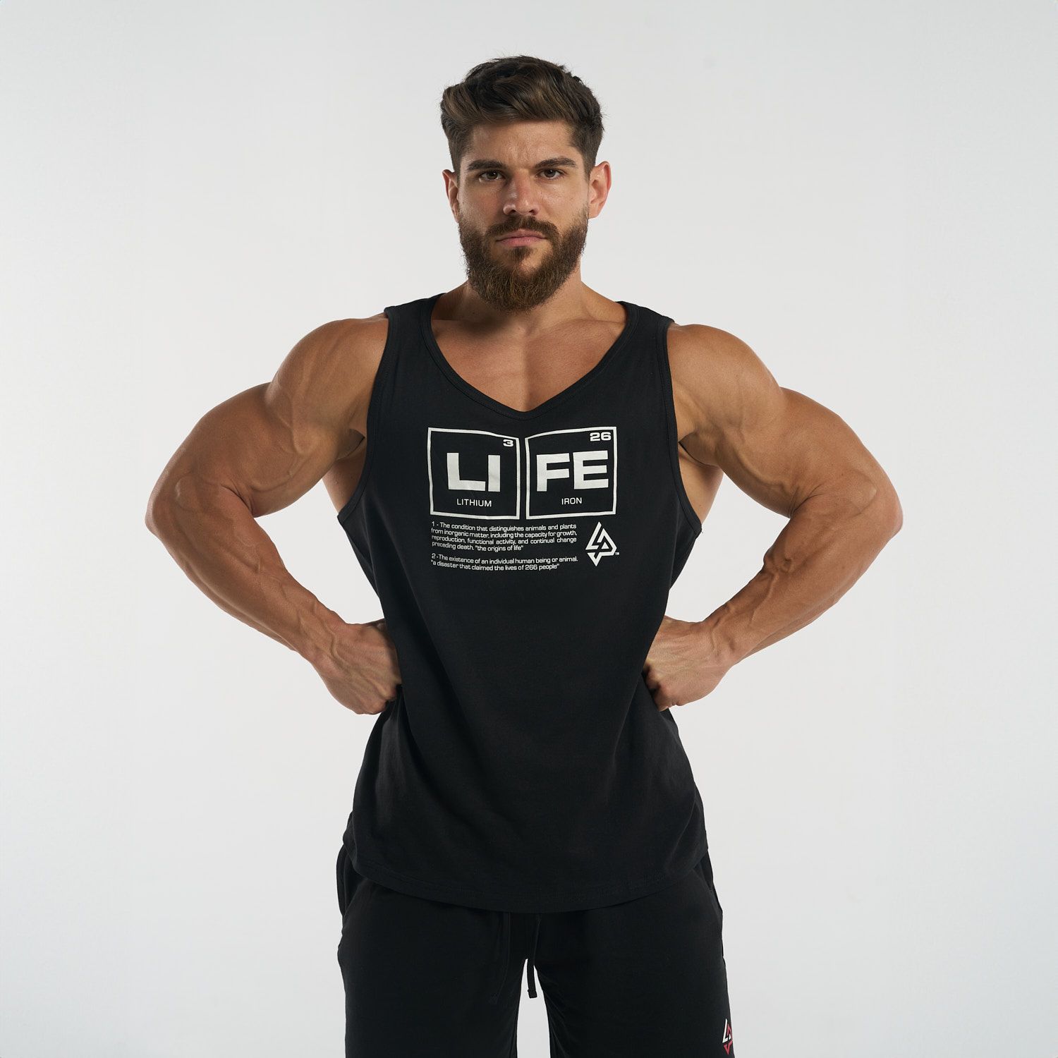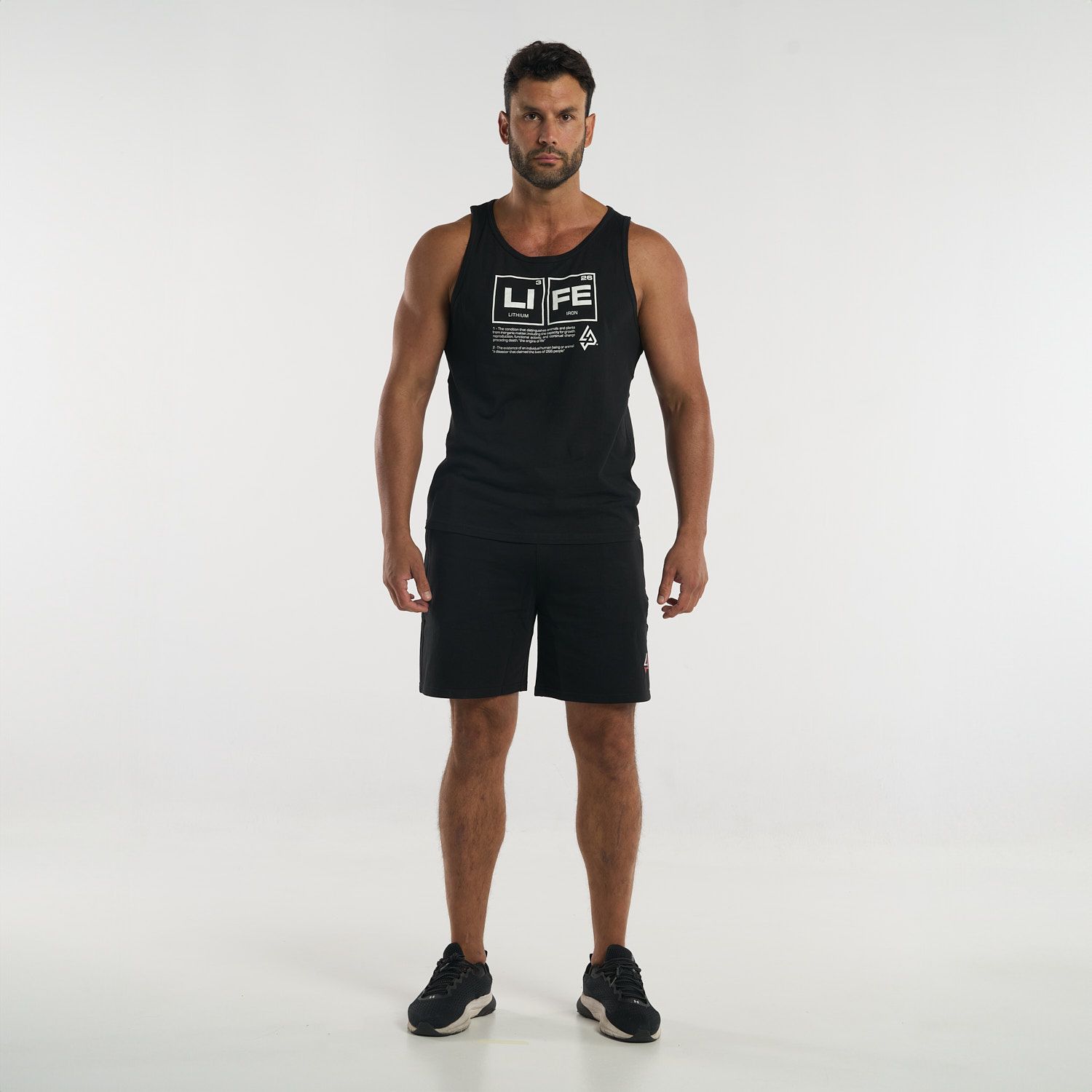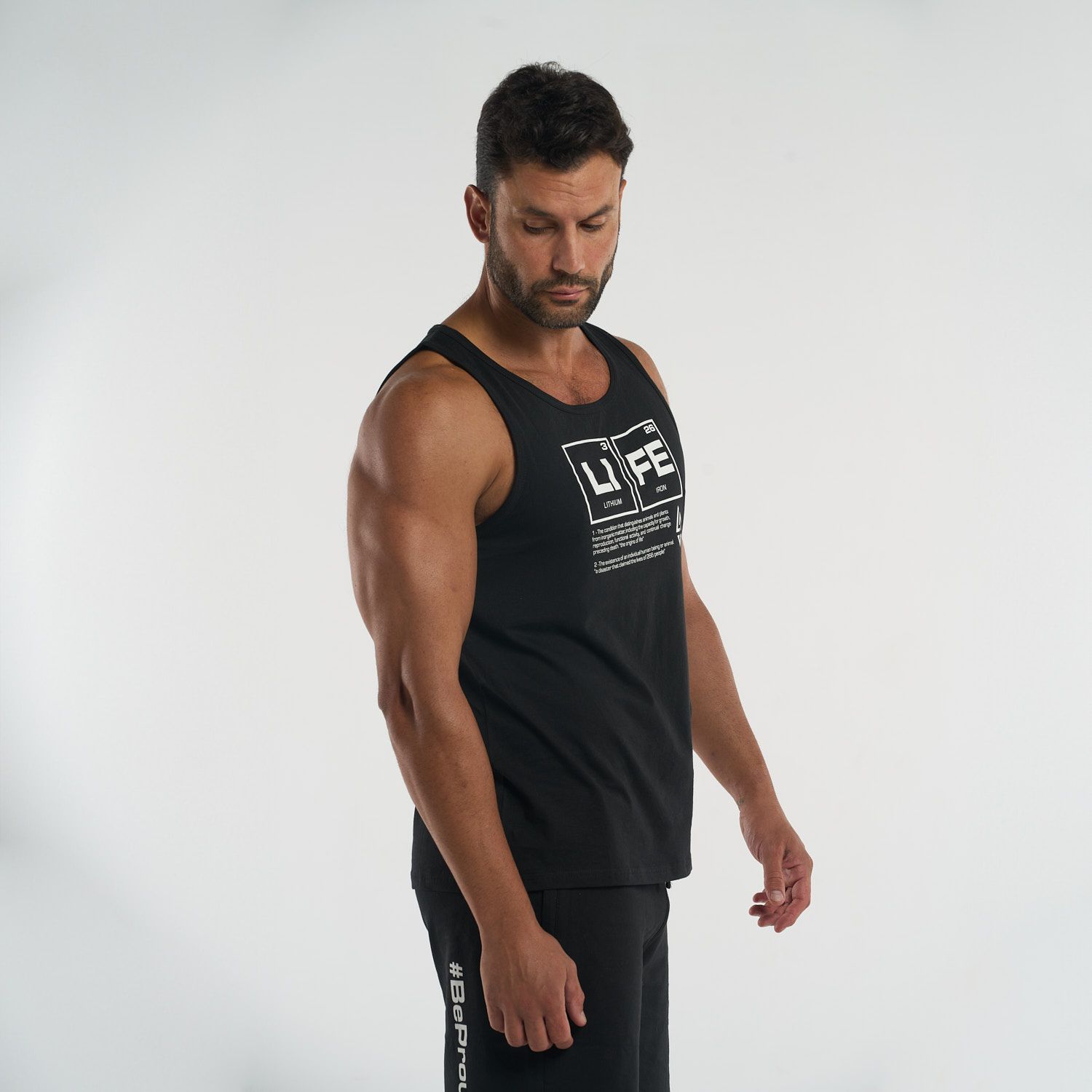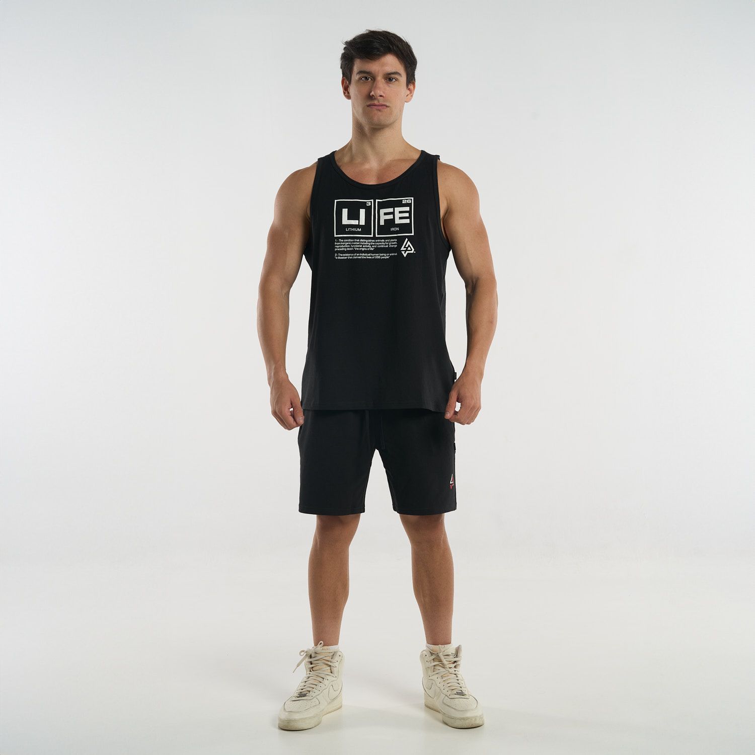 Diseñada para brindar comodidad sin restricciones, esta camiseta tipo tank top permite total libertad de movimiento. Su diseño en el pecho, basado en la tabla periódica con los elementos "Li" (Litio) y "Fe" (Hierro), crea la palabra “LIFE”, un mensaje inspirador que conecta ciencia y motivación en cada uso.