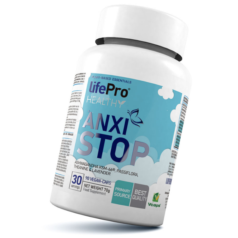 La mezcla de ashwagandha KSM-66, extracto de lavanda, pasiflora y l-teanina, crea un sinergismo a través de modular diferentes vías neuronales. Anxistop tendrá dos efectos principales. Primero, inhibir los canales en relación con el aumento de la excitación y la activación, preveniendo que nuestras preocupaciones o estímulos externos nos mantengan alerta, impidiendo un reposo saludable y un sueño profundo, así como suprimiendo los niveles de estrés y ansiedad crónica. Por otro lado, promoverá vías fisiológicas asociadas con la reducción de la actividad neuronal, aumentando la cognición y comportamiento, nos ayuda a manejar el estrés. Esto redituará en un enriquecimiento de nuestro estado de calma y confort en esas horas finales del día, mejorando la calidad del sueño.