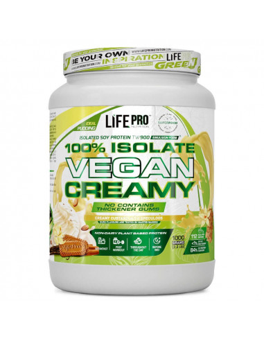Isolate Vegan Creamy es un suplemento de proteína apto para veganos, elaborado con aislado de proteína de soja emulsionada ISP TW900. Está diseñado y formulado por Life Pro para ofrecer una proteína de origen vegetal sin mezcla de otro tipo de proteínas, ideal para deportistas vegetarianos, veganos o aquellos comprometidos con su alimentación.